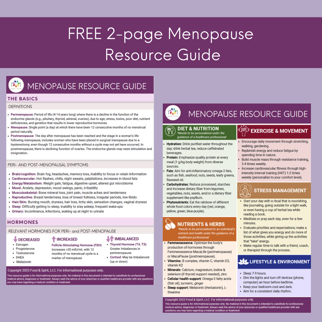 A 2-page free educational download that outlines nutrition and lifestyle approaches to support a balanced menopausal transition.